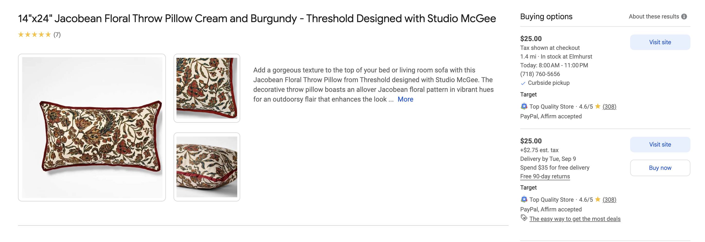 SF | 2 | Living Room | Throw pillow | $25.00 | 0:06 | Target | ![]() |